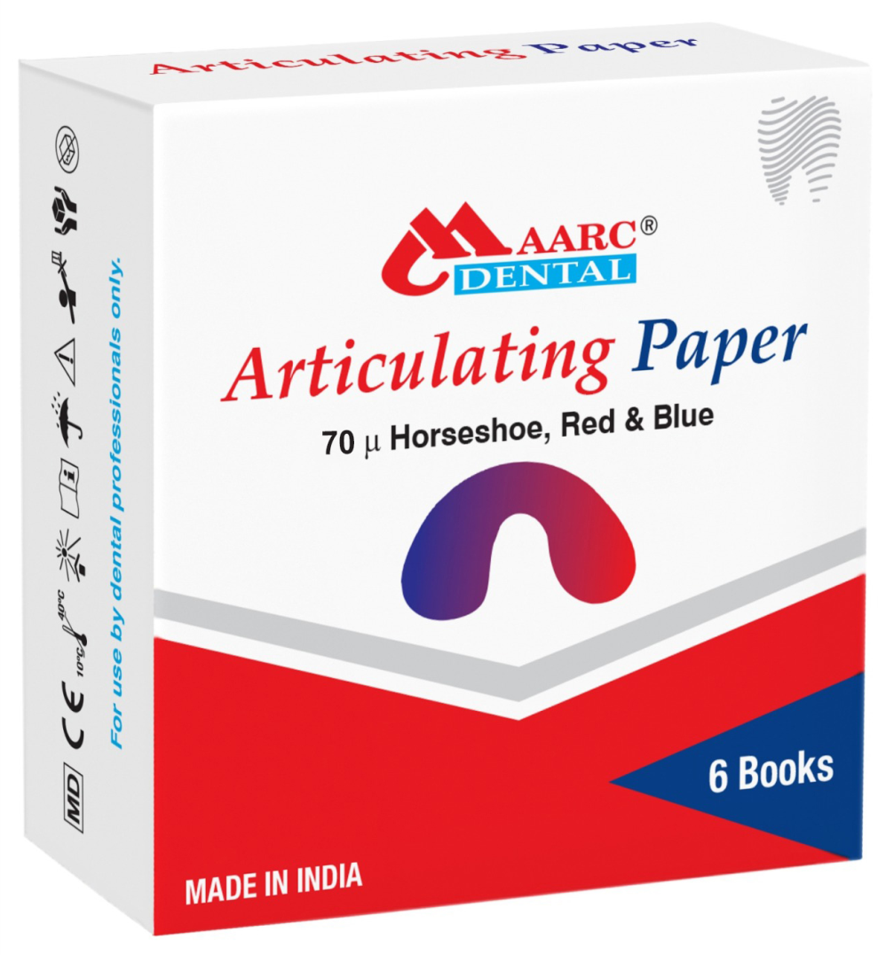 Comes in various thickness. Maarc articulating paper comes with progressive color transfer and aids in visualizing static occlusion.